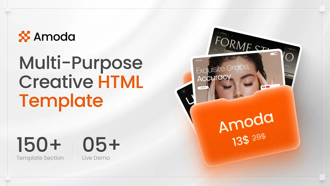 Amoda | Multi-Purpose Creative HTML Template – Modern, Fast & Beautiful is a versatile HTML template designed for creative agencies, freelancers, startups, and businesses. It offers multiple homepage demos, inner pages, and reusable components.